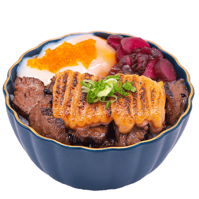 Our signature wagyu beef torched with our special beef sauce, drizzled with house-made spicy Mentaiko sauce. Our Spicy Mentaiko sauce is made with Yuzukosho specially imported by Waa Cow! from Japan. Served on a bed of rice. Accompanied with a 62 °C egg.