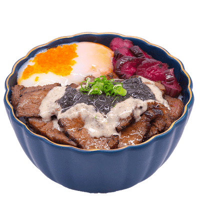Our signature wagyu beef torched with our special beef sauce. Paired with a house-made truffle sauce. Drizzled with ground black truffle and champignons. Served on a bed of rice accompanied with a 62 °C egg and a soy-based beef sauce made inhouse.