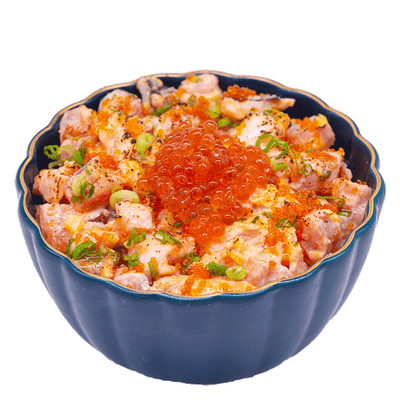Premium sashimi-grade seasonal seafood served with our house-made Mentaiko sauce on a bed of sushi rice*. Topped off with Ikura (salmon roe). Garnished with spring onions, wasabi and shredded nori.