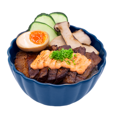 Tender slices of Iberico Secreto pork braised in a dark soy-dashi broth, flame torched and paired with a ramen egg.
